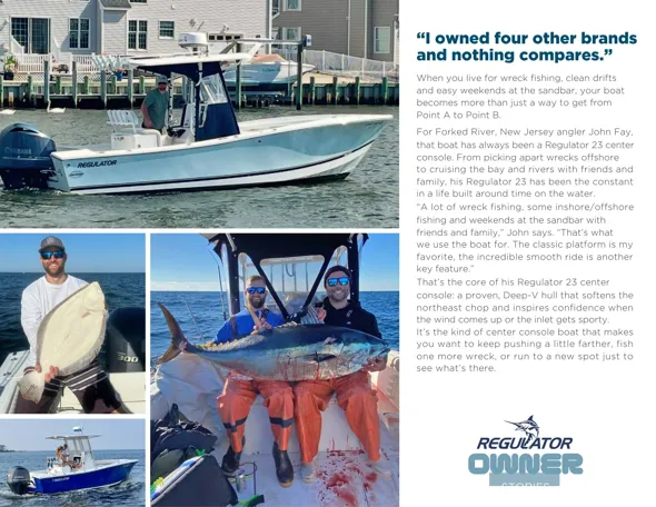 For Forked River, New Jersey angler John Fay, that boat has always been a Regulator 23 center console. From picking apart wrecks offshore to cruising the bay and rivers with friends and family, his Regulator 23 has been the constant in a life built around time on the water.